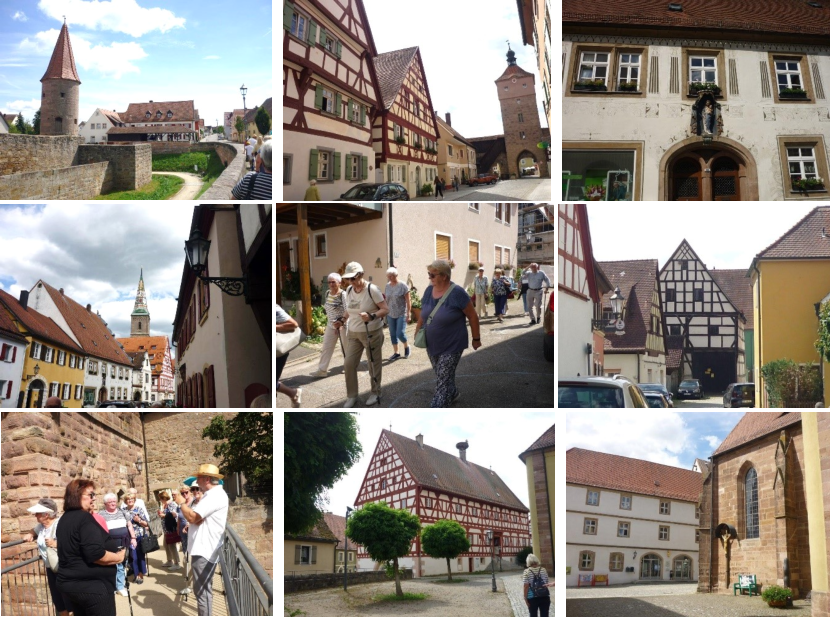 Nach dem Mittagessen wurden wir direkt am Landhotel zu einer Stadtführung von einem Führer abgeholt.DerOrtWolframs-Eschenbachwurdeals„Eschelebach“imZeitraum1057/75erstmalsurkundlicherwähnt.DerOrtsname leitetsichvondemgleichnamigenGewässernamenabunderstrecktsichsüdwestlichvonNürnbergzwischenRezatund obererAltmhl.Im11.JahrhundertgehörteEschenbachdenBischöfenvonEichstättundgegenEndedes12.Jahrhunderts wurdenverschiedeneGrafendieHerrenvonEschenbachbzw.Obereschenbach.Um1212/1220wurdeObereschenbach(seit 1917Wolframs-Eschenbach)vondenWertheimerGrafenalsGeschenkandenDeutschenOrdenvergeben.Abdaspielteder DeutscheOrdeneinebeträchtlicheRolleinderGeschichtevonEschenbach.Erherrschteber600JahreberdieStadt. EschenbachlaganeinerwichtigenHandelsstraßeundwurdenacheinigerZeitzumregionalenHandelsplatzsowiezueinem weltlichenundgeistlichenZentrum.NachdemRitterordenumdasJahr1212,erhieltervonKaiserLudwigdemBayernim Jahr1332dasRecht,ausEschenbach„eineStadtzumachen“undderKaiserLudwigderBayerverliehdemOrtam18. Dezember 1332 das Stadtrecht.