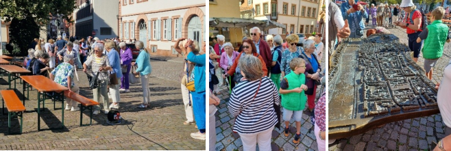 LangebevoresinDeutschlandeineorganisierteDenkmalpflegegab,warerdererste,dersichumdenErhaltunddie DokumentationdesSchlosseskümmerte,selbstalsbeideraufkeimendenSchlossromantiknochniemanddarandachte,den VerfalldesBauwerkszuunterbinden.ZudemführteerdieerstenhistorischenGrabungenimSchlossdurchundwohnteeine ZeitlangimSchlosshof,umzuverhindern,dassdieBürgerHeidelbergsBaumaterialfürihreHäuserausdemSchloss herausbrachten.AngesichtsdieserAktivitätenistesGraimbergzuverdanken,dassdasSchlossnochsteht.Inseinem Wohnhaus,dasheutigePalaisGraimberg,legteerauseigenemVermögeneineSammlungvon„Altertmern“zurGeschichte der Stadt und des Schlosses an, die später zum Grundstock des Kurpfälzischen Museums wurde. Die Frage, ob das Schloss vollständig wiederhergestellt werden solle, führte zu langen Diskussionen. Der Dichter Wolfgang Müller von Königswintermachte sich im Jahr 1868 für eine vollständige Erneuerung stark und rief damit heftige Reaktionen hervor, die in der Presse und in Versammlungen ausgetragen wurden. Aus dem Streit um den richtigen Umgang mit der Schlossruine entwickelte sich eine Grundsatzdiskussion über die Aufgaben der Denkmalpflege. Die Ergebnisse dieser Debatte, die als der „Heidelberger Schlossstreit“ in die Geschichte eingegangen sind, prägten die Prinzipien der Bewahrung historischer Bauwerke nachhaltig. Zum Mittagessen trafen wir uns im Gasthaus Zum Weißen Schwanen, wo wir gemeinsam gut gegessen haben. Anschließend war Zeit zur freien Verfügung und jeder konnte Heidelberg auf seine Weise unsicher machen und erforschen.