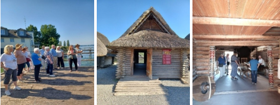 DiePfahlbauten von Unteruhldingen sind ber 100 Jahre altSeitseinerEröffnung1922machtdasPfahlbaumuseumdasfaszinierendeversunkeneWeltkulturerbe„Pfahlbauten“sichtbar. EsgehörtzudenbeliebtestenFreizeitzielenamBodenseeundistmitseinen23rekonstruiertenHäusernausderStein-und BronzezeiteinesdergrößtenMuseenseinerArtinEuropa.InspektakulärerLageamundüberdemBodenseeerhieltenwir anschauliche, oft auch verblüffende Einblicke in das Leben vor 3.000-6.000 Jahren.Auf der weitläufigen Anlage ist an jeder Ecke etwas Neues zu erkunden. Bei unserem Rundgang genossen wir ein wunderbares Flair in der idyllisch gelegenen Bucht am Rande des Naturschutzgebietes. Erst 2022 wurden die beiden ersten Ursprungshäuser wieder eröffnet, in denen sich eine Sonderausstellung den Anfängen des Museums widmet. Wir haben den Steinzeitparcours besucht, in dem Experimental-Archäologen das Jahresthema „Haus am See- Wie Pfahlbauer bauen“ erklären. Es wurden teils erstaunliche Techniken der Pfahlbauzeit vermittelt und Werkzeuge von damals erklärt, Bronze gegossen oder gezeigt, wie man damals Schnüre hergestellt hat.Auf Schautafeln wird erläutert, wie so ein Gebäude damals Stück für Stück entstanden ist. Im Parcours befindet sich das Pfahlbaukino, in dem ein informativer Film zum experimentellen Hausbau zusammen mit der „Sendung mit der Maus“ gezeigt wird. In der Ausstellung entdeckten man die Originalfunde aus den UNESCO-Welterbestätten rund um die Alpen, darunter 5.000 Jahre alte Äpfel, rätselhafte Fabelwesen aus Bronze oder die ersten Schmuckstücke Mitteleuropas.