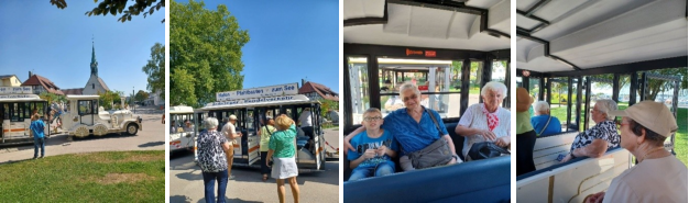 Als wir uns nach der Besichtigung wieder auf den Weg zu unserem Bus machten, stellten wir fest, dass zum Busparkplatz ein Train fährt. Wie gerufen fuhr dieser gerade vor, in den wir gleich einstiegen.
