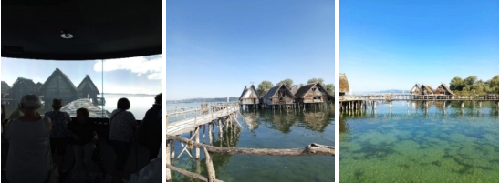 Mit schönen Ausblicken über den Bodensee erreichten wir unser Ziel bei den bekannten Pfahlbauten in Unteruhldingen. Die Besichtigung der Rekonstruktionen einstiger Pfahlbaudörfer macht eine seit fast 100 Jahren versunkene Welt wieder sichtbar. Die Pfahlbauten verkörpern eine ungewohnte Welt und wirken doch mit ihren Materialien natrlich und vertraut.